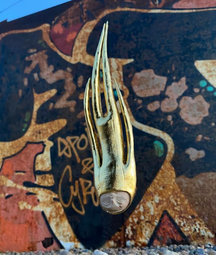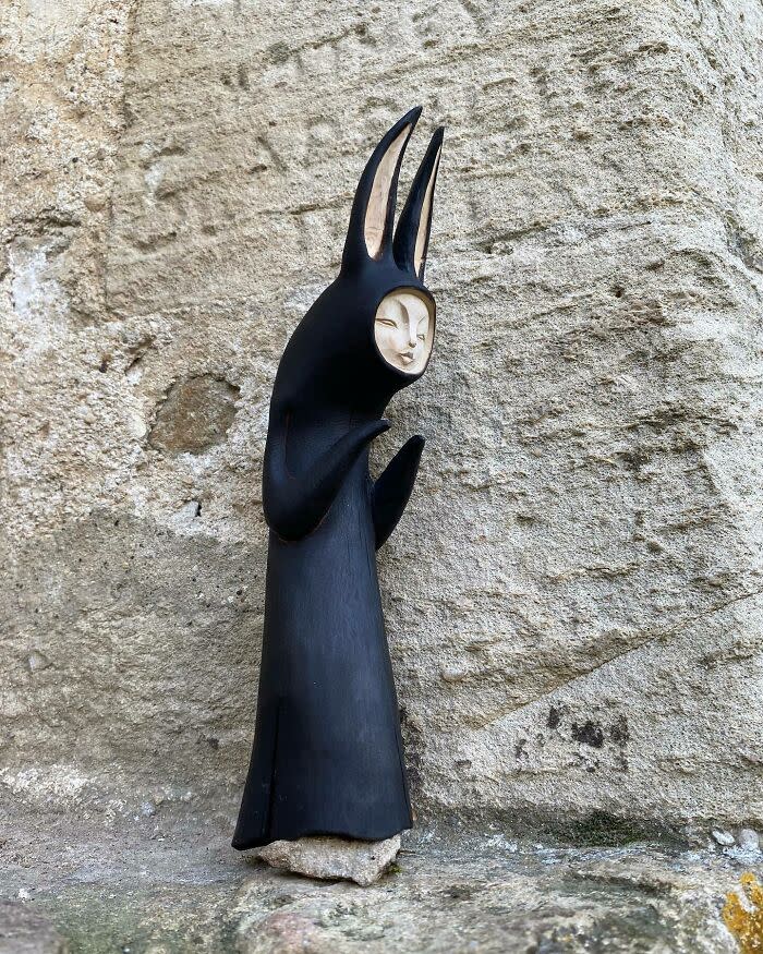 When Pollard discovered hawthorn trees after moving to Buckinghamshire, his practice became even more elusive. Hawthorn has long been steeped in British folklore, telling stories of the fairy world, sacred rituals and ancient magic. These stories not only inspire his work, they live it. The figures that emerge are often liminal, suspended between the human, the spirit, and something completely unrecognizable, as if emerging from the edge of myth and taking shape.
