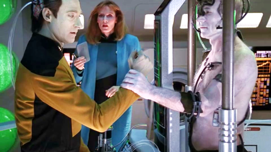 in Star Trek: The Next Generationmost of the adventure takes place in deep space. Because the intrepid crew has an ongoing mission to explore strange new worlds, seek out new life and new civilizations, and (come on, we know we’re saying it out loud already) boldly go where no one has gone before. However, in “The Best of Both Worlds”, the Borg cube begins heading directly towards Earth. The crew of the Enterprise attempts to develop a weapon that can defeat this relentless enemy, who seems nearly unstoppable after assimilating Captain Picard. Meanwhile, Starfleet fleets converge on Wolf 359 for a final stand against the Borg.